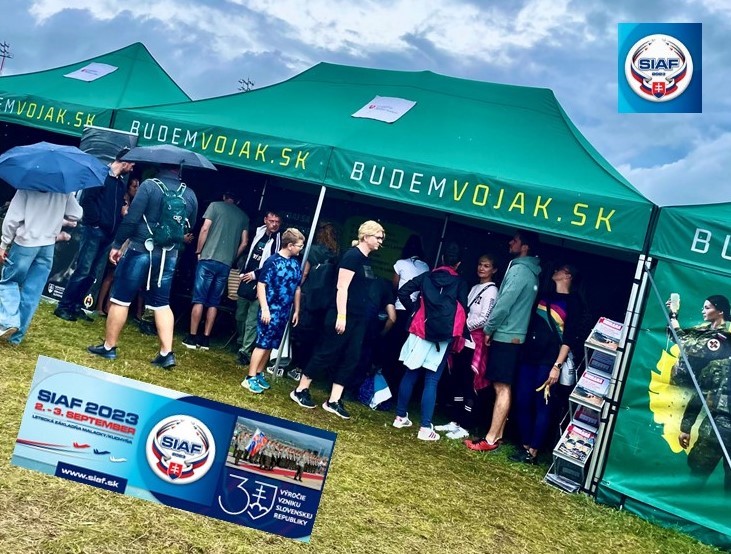 Ani my sme nepremeškali 12. ročník najväčšej leteckej udalosti na Slovensku a to Medzinárodné letecké dni SIAF 2023, konanej v posledný prázdninový víkend 2. a 3. septembra. Tentokrát sme sa predstavili účastníkom podujatia až piatich regrutačných stanoch, kde sme uchádzačom detailne objasnili podmienky vstupu, ako aj samotnú službu v ozbrojených silách SR. Rovnako spokojní, ako záujemci o vstup do našich radov odchádzali od našich stanov aj najmenší zamaskovaní „vojačikovia“ - možno naši budúci kolegovia. Sme radi, že aj my sme boli súčasťou programu plného dynamických a statických ukážok.