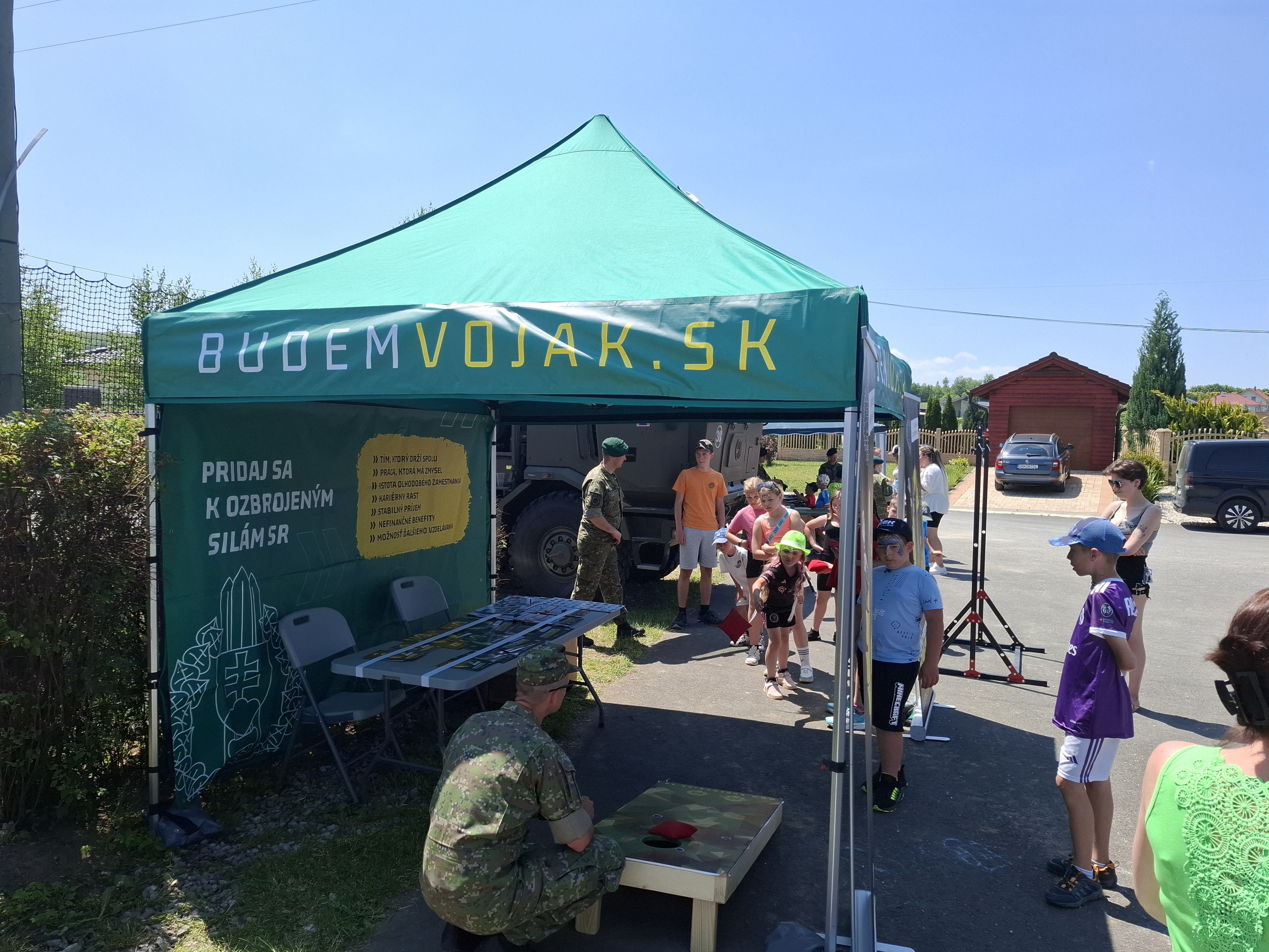 Pre deti bol pripravený bohatý sprievodný program. Deti si v regrutačnom stánku mohli vyskúšať súťaž v cornhole, kde si preverili svoju presnosť a šikovnosť pri hádzaní vrecúšok na terč.