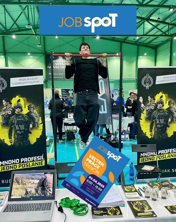 Trenčín 3. apríl 2025 a JobSpoTT - veľtrh práce určený ľuďom, ktorí hľadajú prácu, zamestnancom, ktorí by radi zmenili svoje súčasné zamestnanie, ale aj študentom, ktorí sa obzerali po pracovnom uplatnení v budúcnosti. Boli sme priamo pri tom – odpovedali sme na otázky, vysvetľovali, čo všetko Ti môžeme ponúknuť a hlavne, že byť vojakom a vojačkou je viac než len práca.